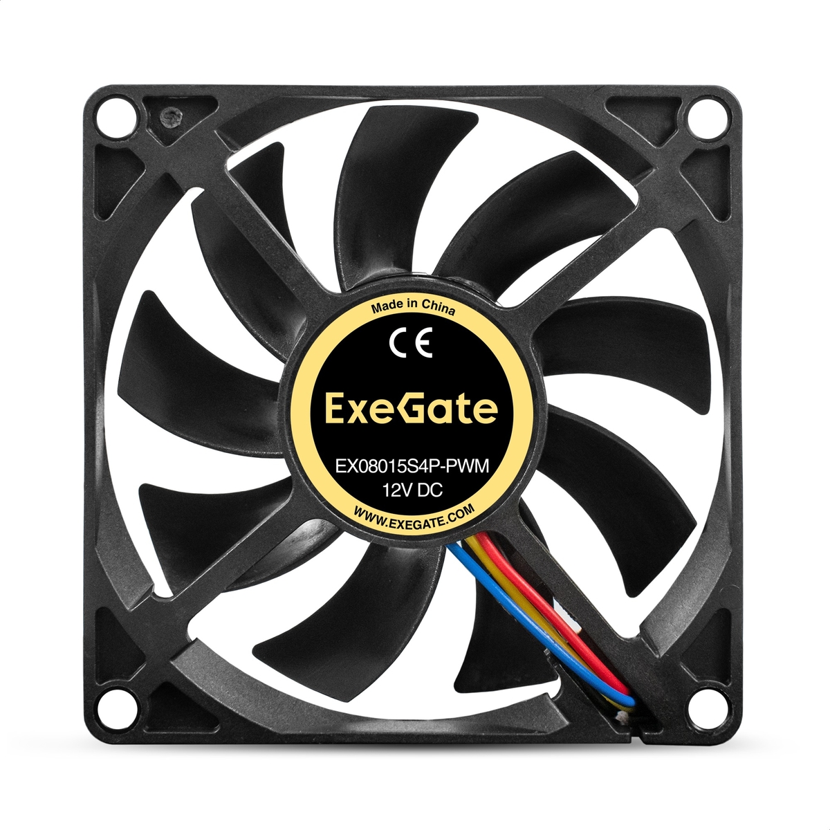 Вентилятор 12В DC ExeGate EX08015S4P-PWM (80x80x15 мм, Sleeve bearing (подшипник скольжения), 4pin, PWM, 0-2000 RPM, 0-20dBA)