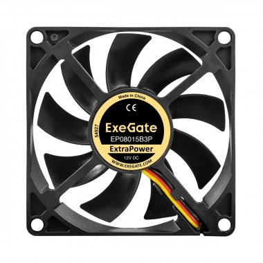 Вентилятор 12В DC ExeGate ExtraPower EP08015B3P (80x80x15 мм, 2-Ball (двойной шарикоподшипник), 3pin, 2600RPM, 26dBA)