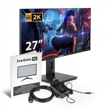 Монитор игровой с аудио 27" WQHD 165 Гц ExeGate Combat EG2707A (IPS LED Grade A+, 2K, 2560x1440@165Гц (WQHD), 16:9, 400cd/m2, 1000:1, 178°/178°, 1ms, Speakers, 2xHDMI2.0, DisplayPort, USB, audio-out, Flicker-free, FreeSync, Low Blue Light, кабель HDMI 1.5м, VESA 100x100, регулировка высоты (HAS), регулировка наклона (tilt), поворот экрана (swivel), поворот экрана на 90° (pivot), черный)