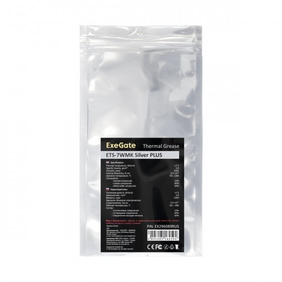 Exegate EX296089RUS Термопаста ETS-7WMK Silver PLUS (7,2 Вт/(м•К)
