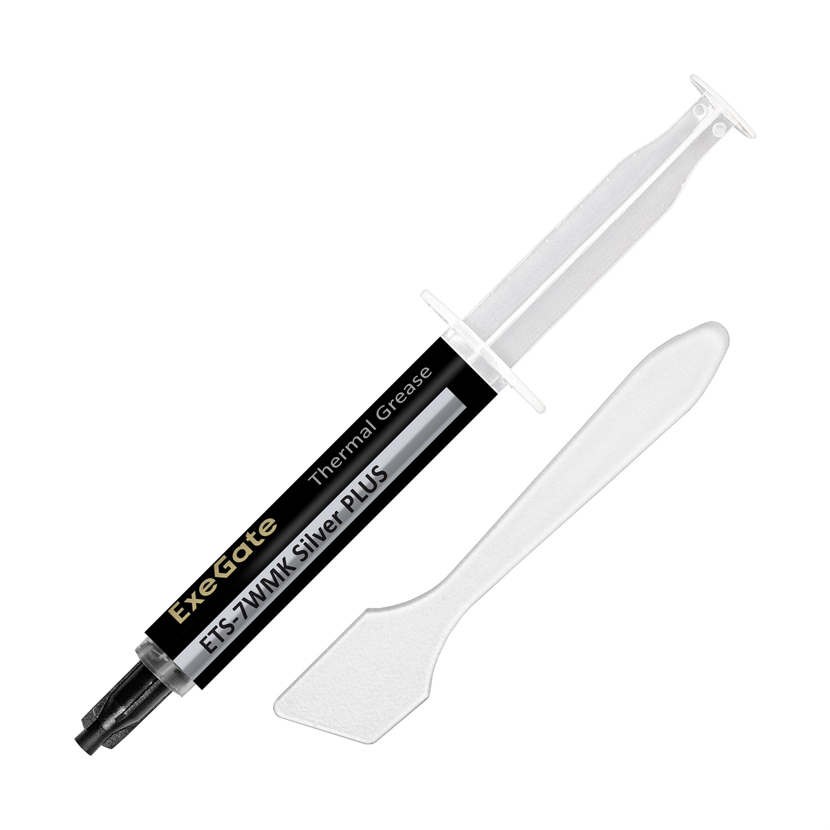 Термопаста ExeGate ETS-7WMK Silver PLUS (7,2 Вт/(м•К), 5г, шприц с лопаткой)