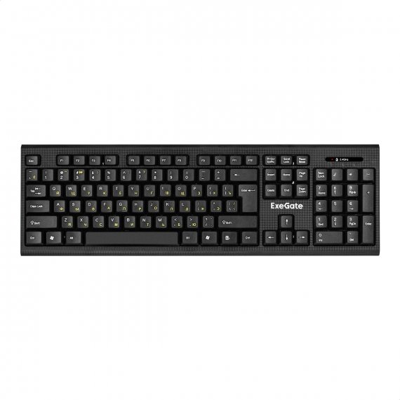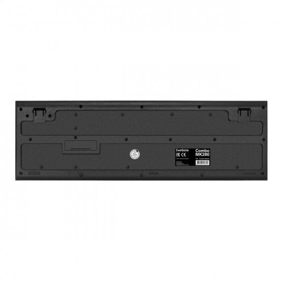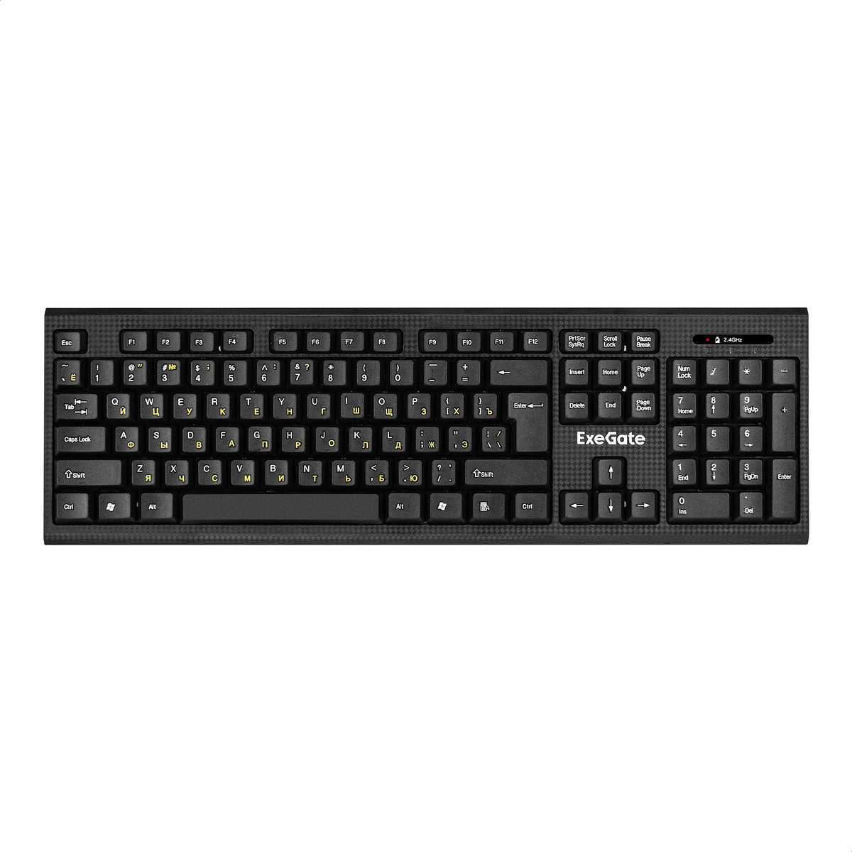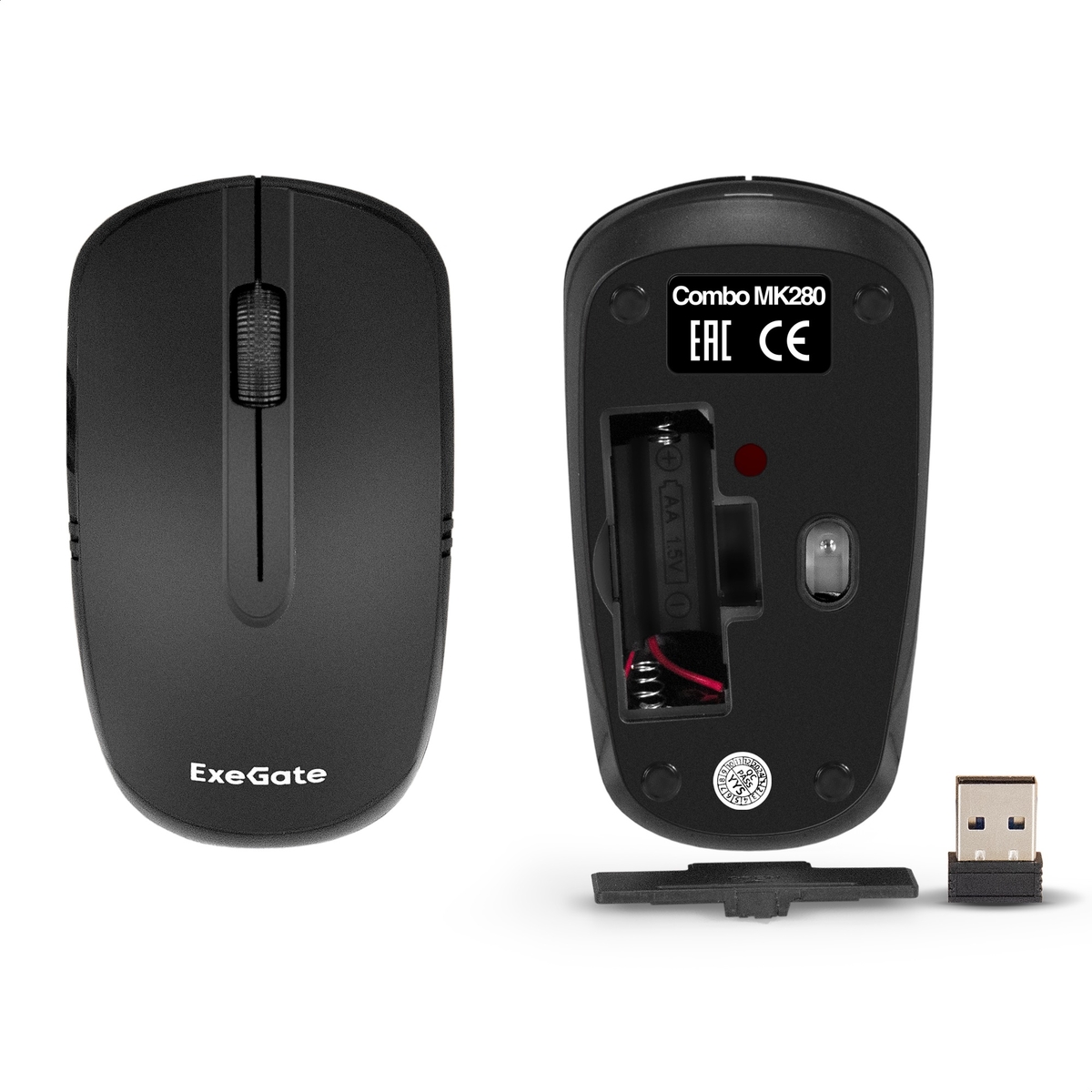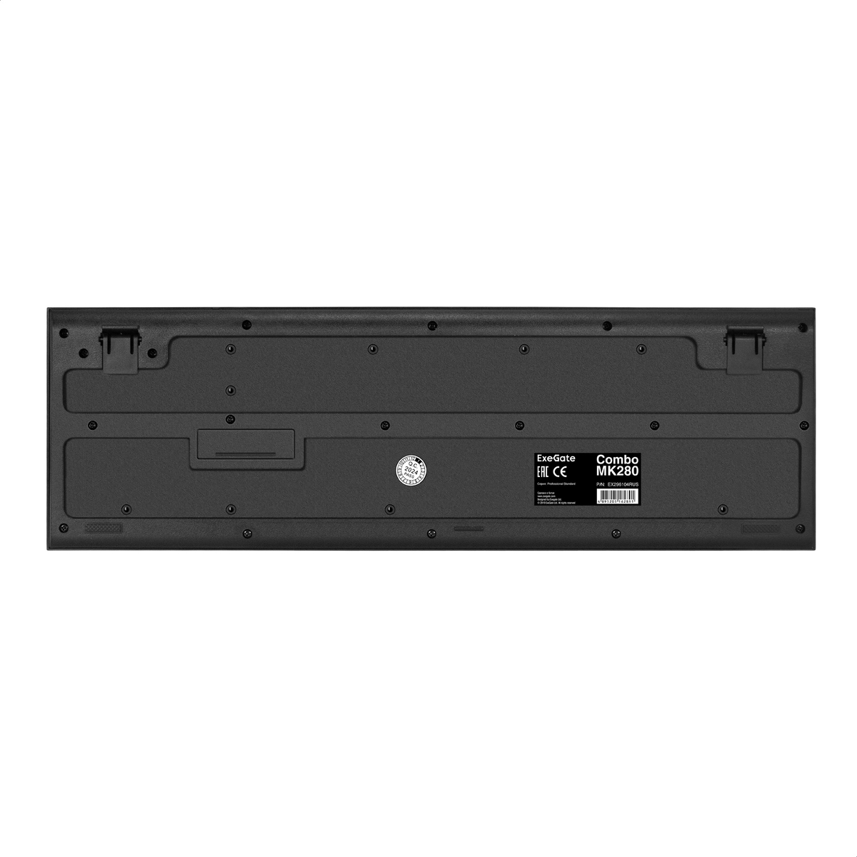 Комплект беспроводной ExeGate Professional Standard Combo MK280 (клавиатура полноразмерная влагозащищенная 104кл. + мышь оптическая 1000dpi, 3 кнопки и колесо прокрутки; USB, радиоканал 2,4 ГГц, радиус действия до 10м, черный, Color Box)