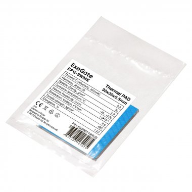 Термопрокладка ExeGate EPG-9WMK (30x30x0.5 mm, 8,5 Вт/ (м•К), теплопроводящая клейкая двухсторонняя)