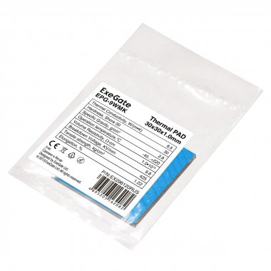 Термопрокладка ExeGate EPG-9WMK (30x30x1.0 mm, 8,5 Вт/ (м•К), теплопроводящая клейкая двухсторонняя)
