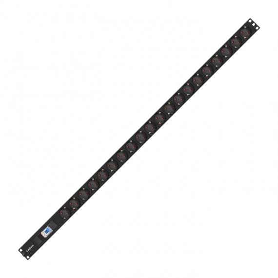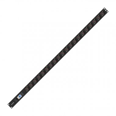 Вертикальный блок розеток с автоматом защиты ExeGate ServerPro PDU-V201 Al-20S-EU3-1P (19", 1U, Алюминий,20 Schuko, кабель с евровилкой VDE-250V-16A-3*2.5mm2, медь, 2.8 метра, автомат защиты, черный, RTL)