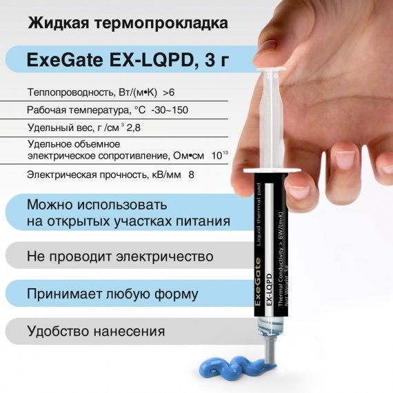 Жидкая термопрокладка ExeGate EX-LQPD (6 Вт/(м•К), 3г шприц с лопаткой)