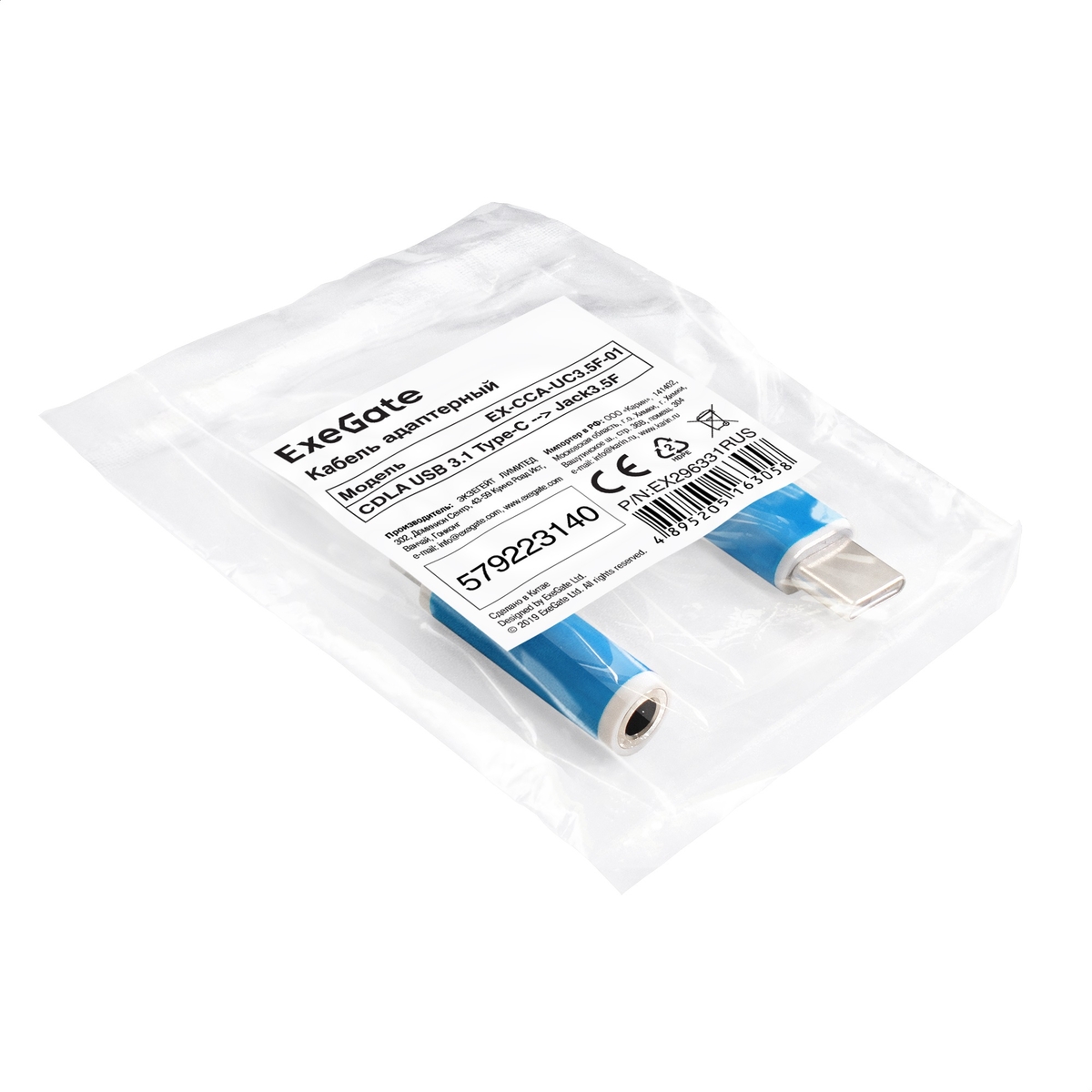Кабель-адаптер для подключения наушников к устройствам с USB Type-C ExeGate (USB Type-C/Jack3.5F (headset), для подключения стандартных наушников, колонок 3.5 мм к телефону, планшету и др.устройствам с аудиоразъемом Type-C)