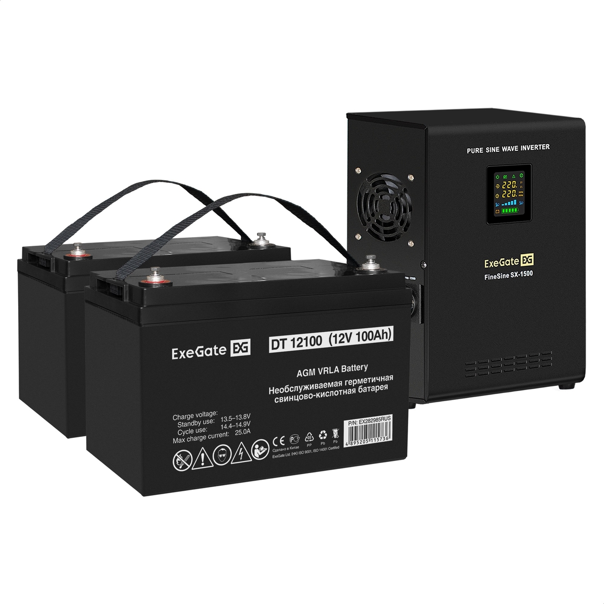 Комплект ИБП ExeGate FineSine SX-1500.LCD.AVR.2SH + Батарея 100Aч, 2 шт. (ИБП + АКБ , 2шт.)