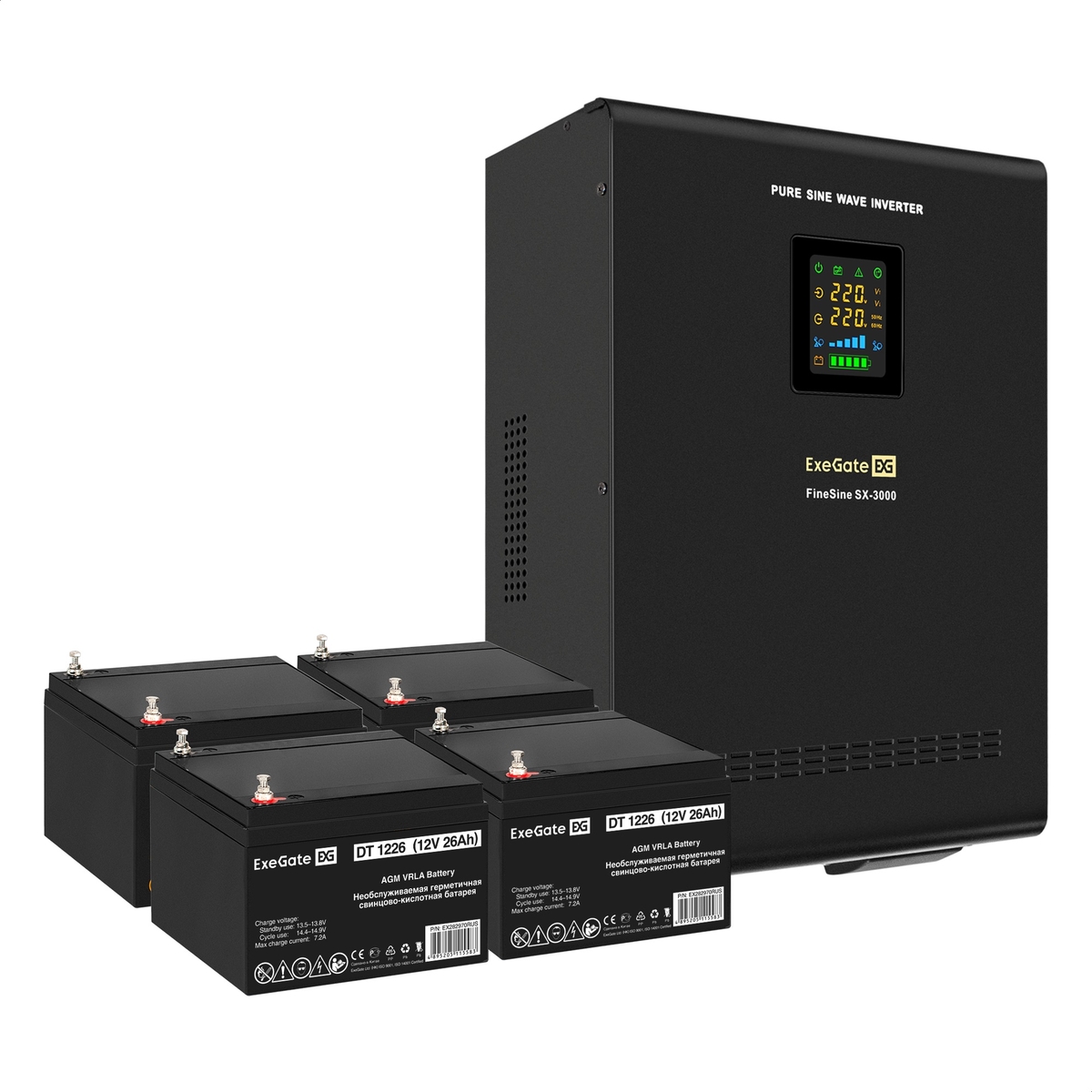 Комплект ИБП ExeGate FineSine SX-3000.LCD.AVR.2SH.T + Батарея 26Aч, 4 шт. (ИБП + АКБ , 4шт.)