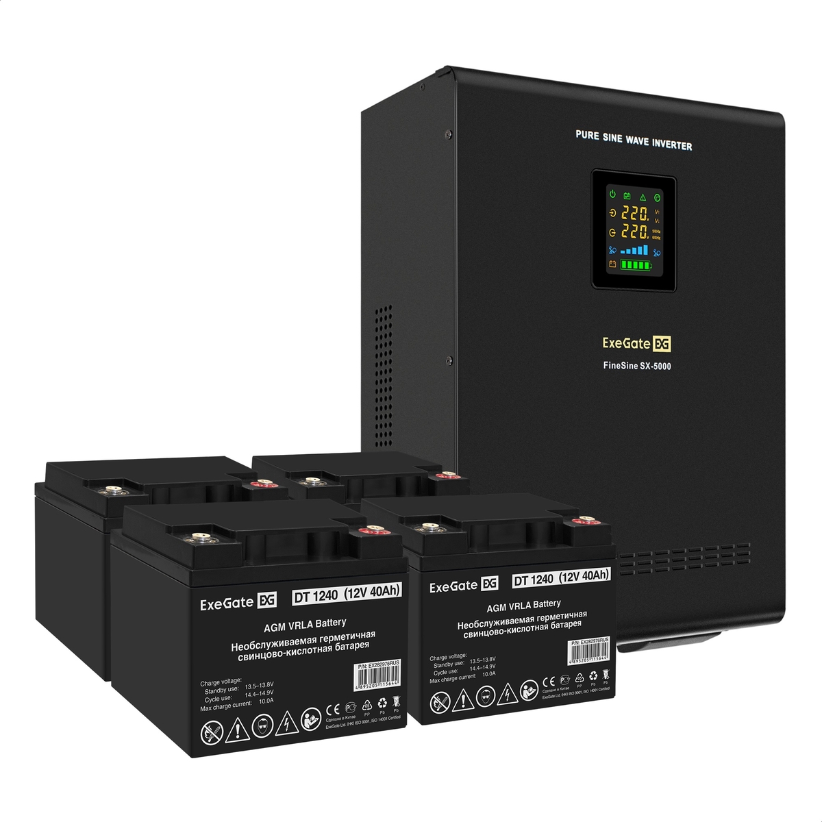 Комплект ИБП ExeGate FineSine SX-5000.LCD.AVR.2SH.T + Батарея 40Aч, 4 шт. (ИБП + АКБ , 4шт.)