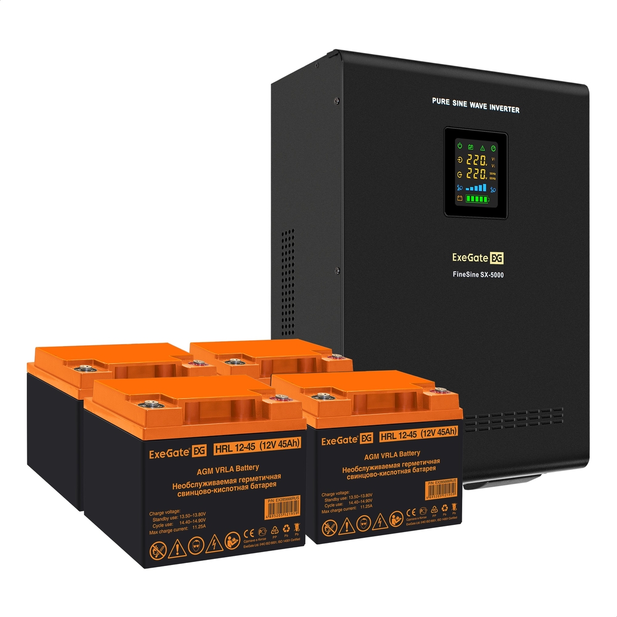 Комплект ИБП ExeGate FineSine SX-5000.LCD.AVR.2SH.T + Батарея 45Aч, 4 шт. (ИБП + АКБ , 4шт.)