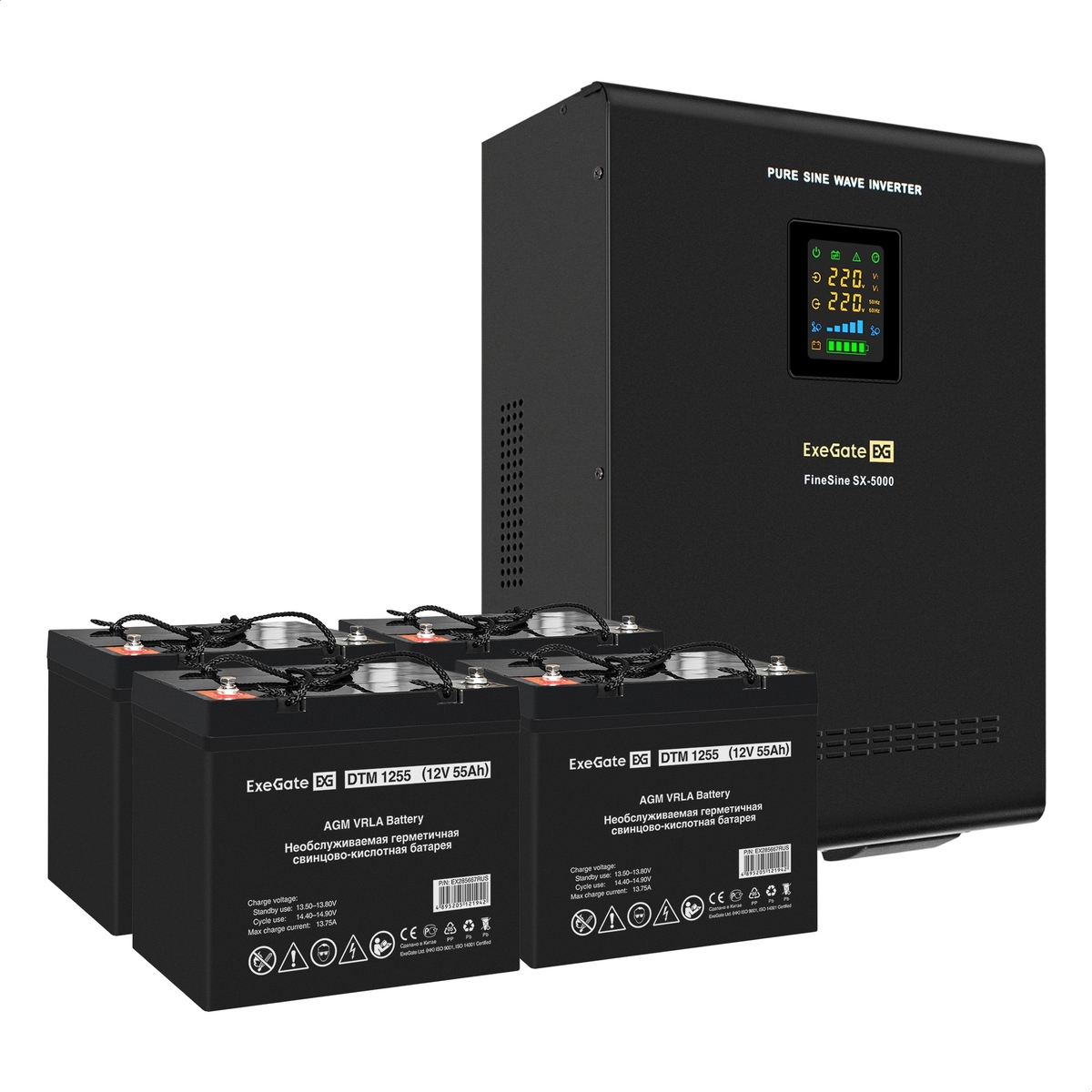 Комплект ИБП ExeGate FineSine SX-5000.LCD.AVR.2SH.T + Батарея 55Aч, 4 шт. (ИБП + АКБ , 4шт.)