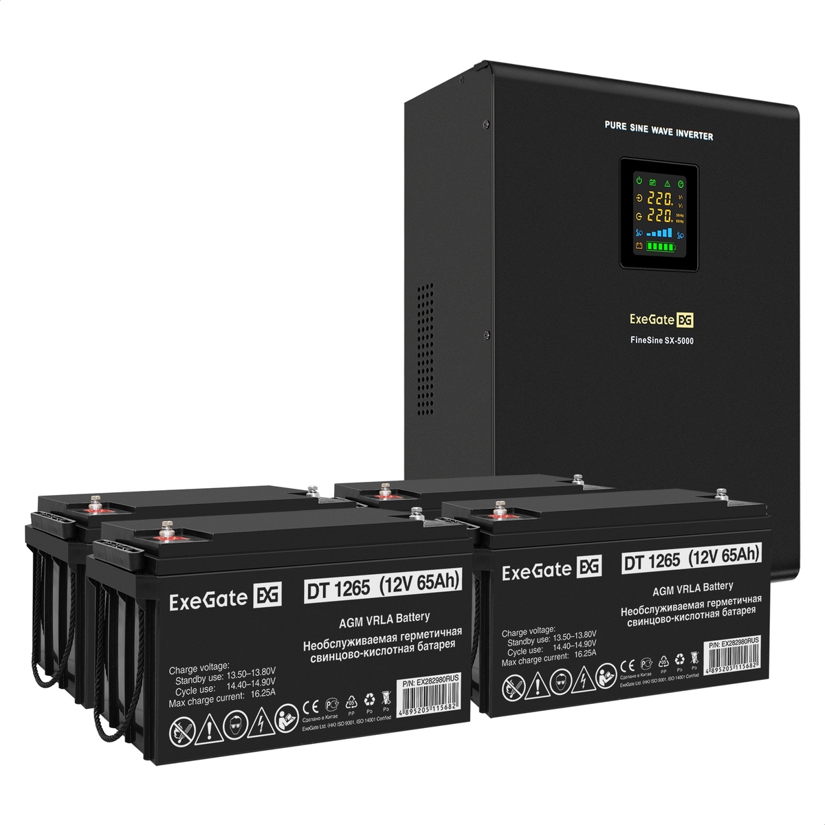 Комплект ИБП ExeGate FineSine SX-5000.LCD.AVR.2SH.T + Батарея 65Aч, 4 шт. (ИБП + АКБ , 4шт.)