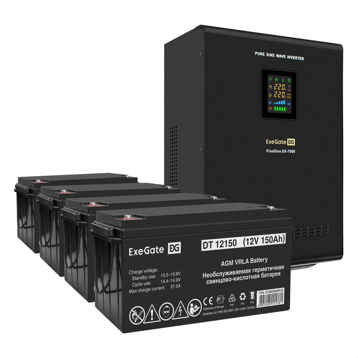Комплект ИБП ExeGate FineSine SX-7000.LCD.AVR.2SH.T + Батарея 150Aч, 4 шт. (ИБП + АКБ , 4шт.)