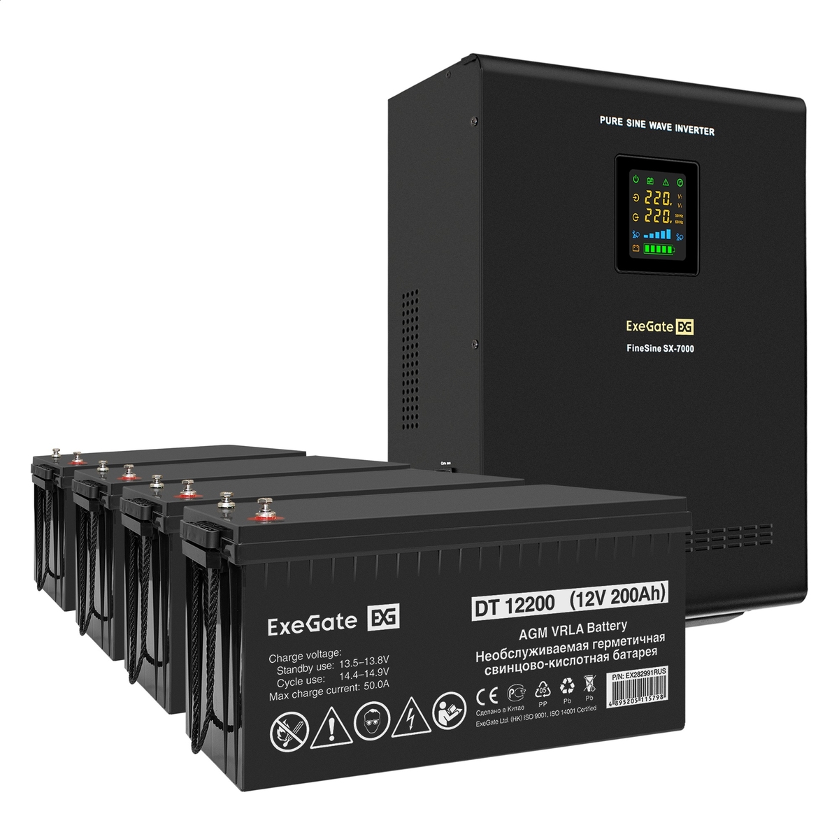 Комплект ИБП ExeGate FineSine SX-7000.LCD.AVR.2SH.T + Батарея 200Aч, 4 шт. (ИБП + АКБ , 4шт.)