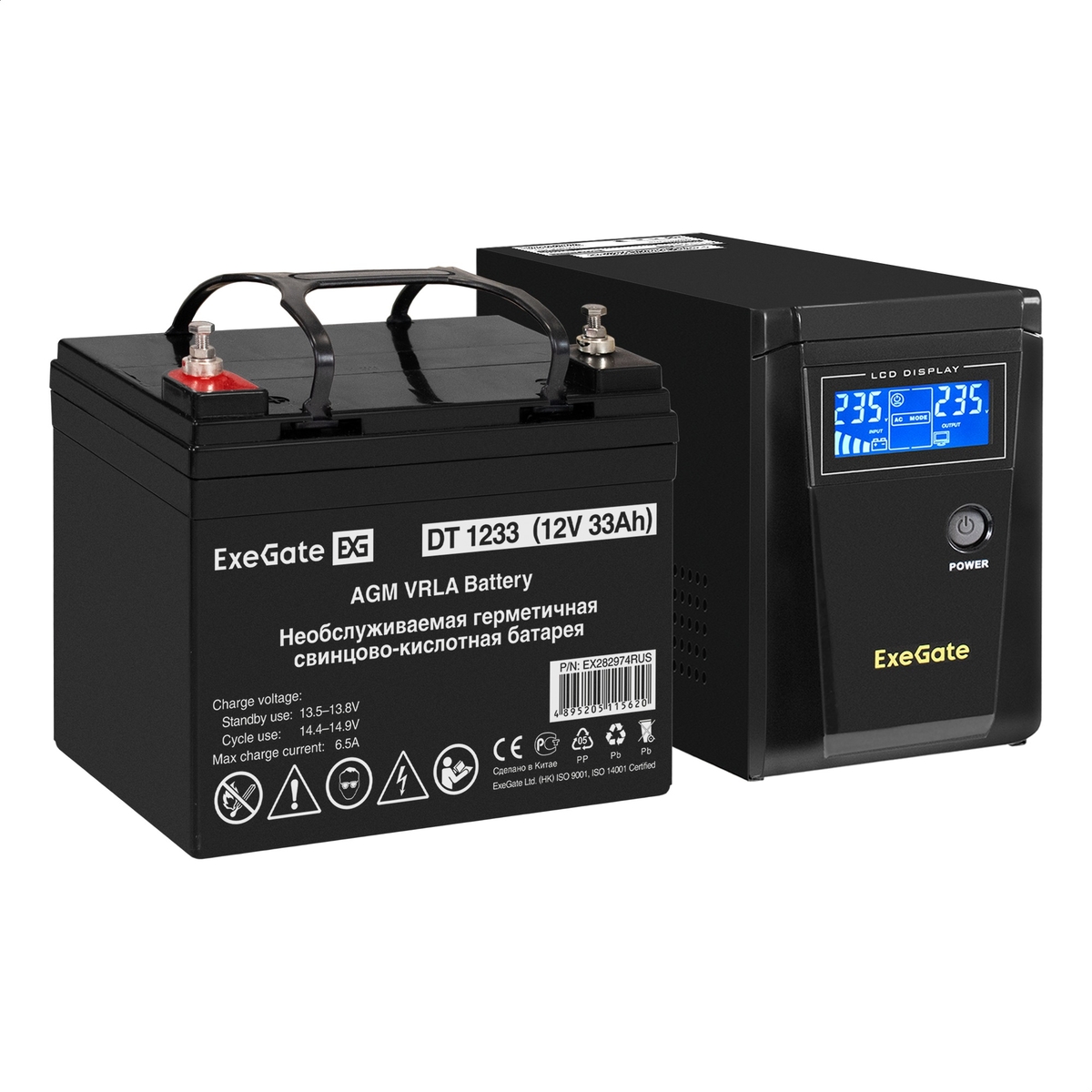 | Емкость батареи и количество батарей, В/Ач | ExeGate DT 1233 (12В/33Ач) |