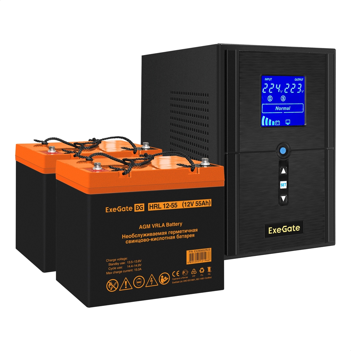 Комплект ИБП ExeGate SineTower SZ-1500.LCD.AVR.2SH.1C13.USB + Батарея 55Aч, 2 шт. (ИБП + АКБ , 2шт.)