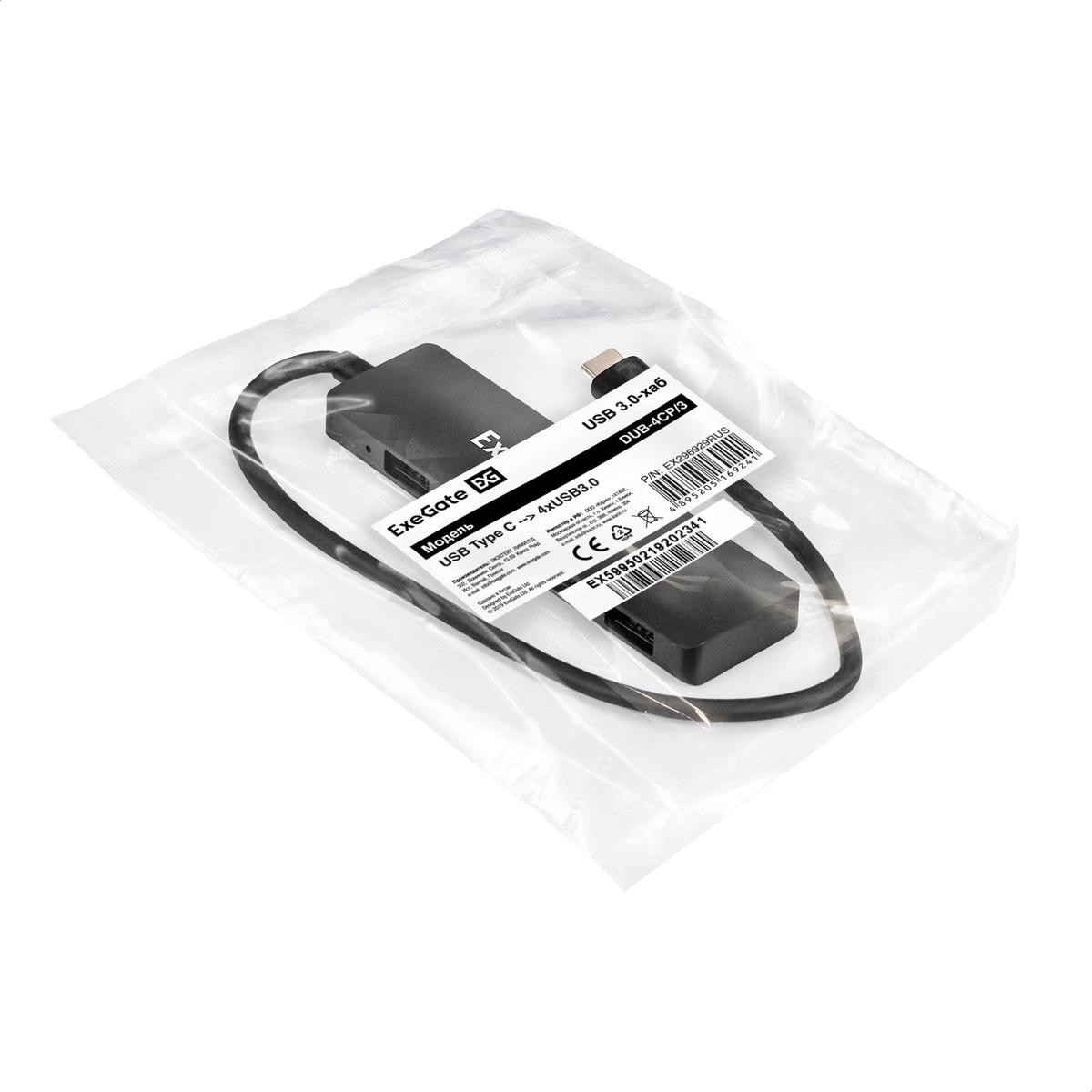 USB-Хаб (концентратор) 4-в-1 ExeGate DUB-4CP/3 (кабель-адаптер USB Type C --> 4xUSB3.0, Plug&Play, черный)