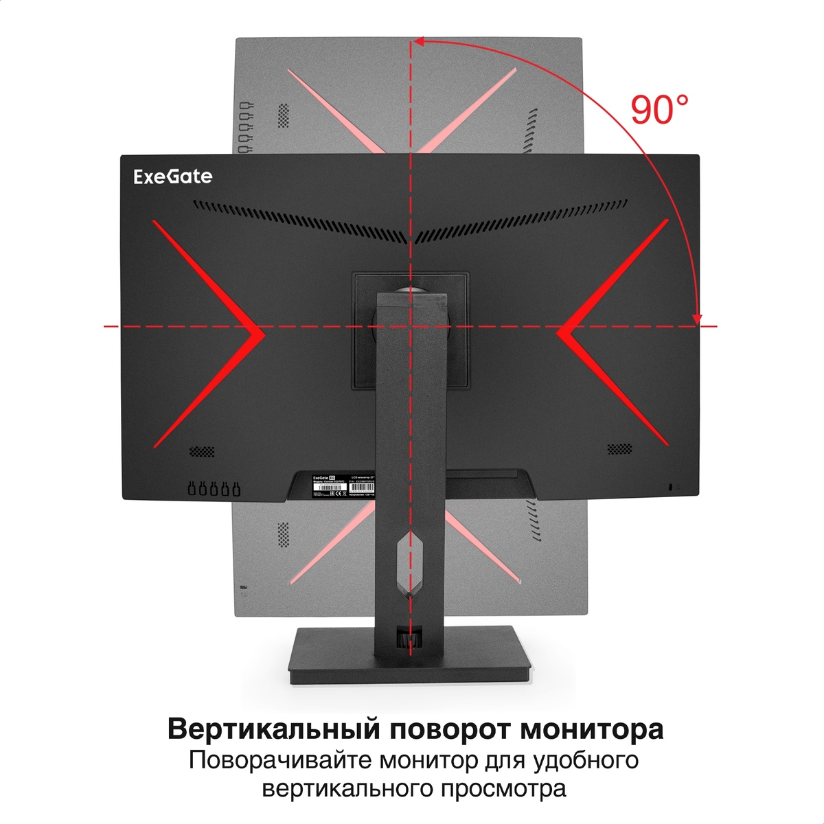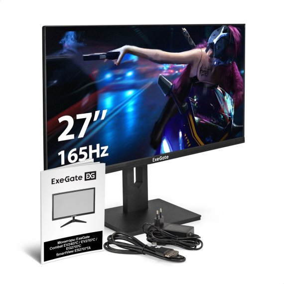 Монитор игровой с аудио 27" 165 Гц ExeGate Combat EG2707C (IPS LED Grade A+, FHD, 1920x1080@165Гц, 16:9, 250cd/m2, 1000:1, 178°/178°, 1ms, Speakers, HDMI2.0, DisplayPort, USB, audio-out, Flicker-free, FreeSync, Low Blue Light, кабель DP 1.5м, VESA 100x100, регулировка высоты (HAS), регулировка наклона (tilt), поворот экрана (swivel), поворот экрана на 90° (pivot), черный)