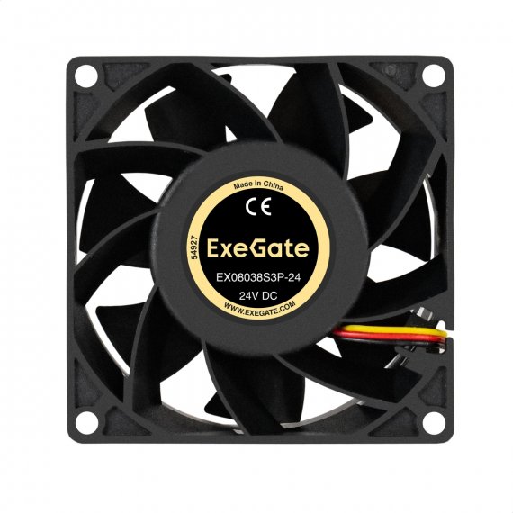 Вентилятор 24В DC ExeGate EX08038S3P-24 (80x80x38 мм, Sleeve bearing (подшипник скольжения), 3pin, 4500RPM, 43dBA)