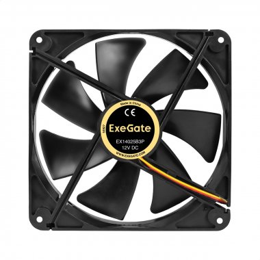 Вентилятор 12В DC ExeGate EX14025B3P (140x140x25 мм, 2-Ball (двойной шарикоподшипник), 3pin, 1250RPM, 23dBA)