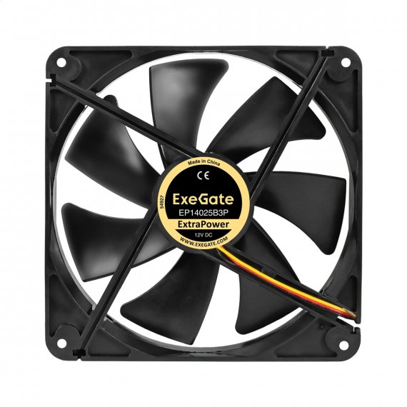 Вентилятор 12В DC ExeGate ExtraPower EP14025B3P (140x140x25 мм, 2-Ball (двойной шарикоподшипник), 3pin, 1600RPM, 31dBA)