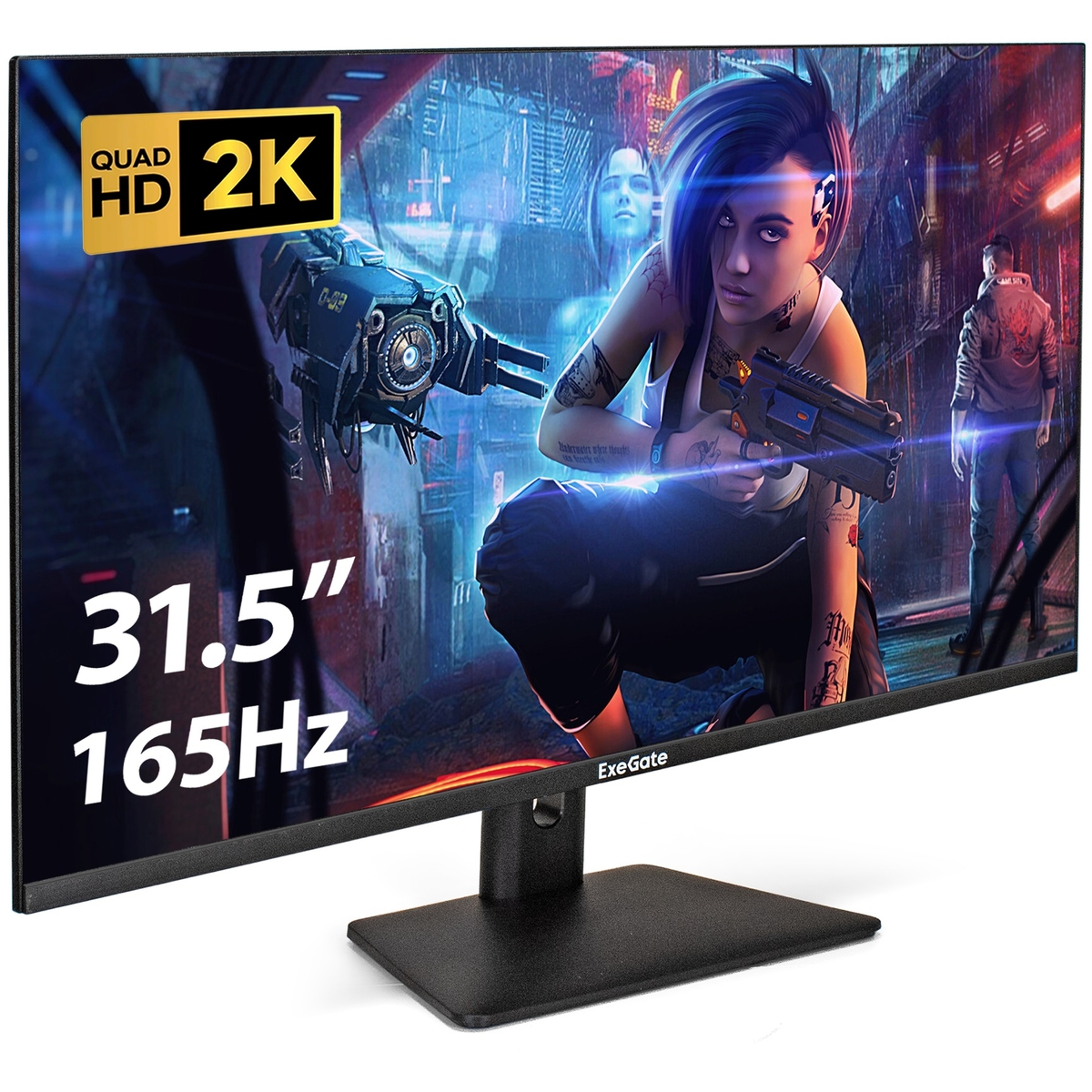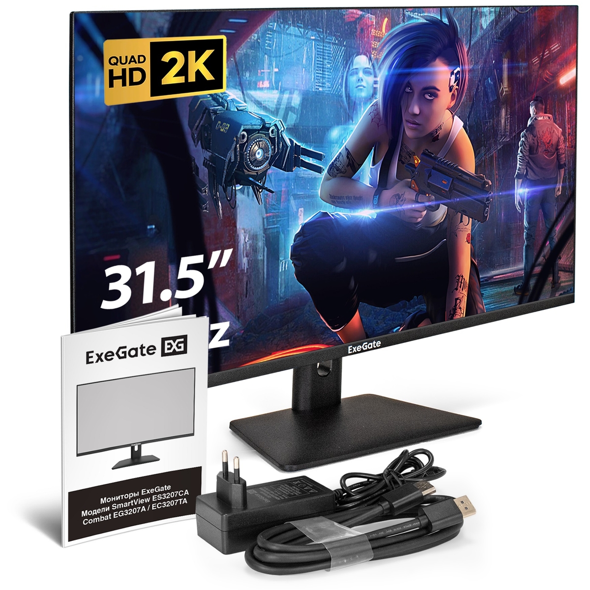 Монитор игровой с аудио выходом 31.5" WQHD 165 Гц ExeGate Combat EG3207A (IPS LED Grade A+, 2K, 2560x1440@165Гц (WQHD), 16:9, 300cd/m2, 1000:1, 178°/178°, 1ms, 2xHDMI2.0, DisplayPort, USB, audio-out, Flicker-free, FreeSync, Low Blue Light, кабель DP 1.5м, VESA 75x75, регулировка наклона (tilt), черный)