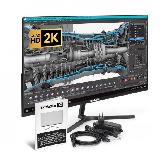 Монитор с аудио выходом 27" WQHD ExeGate SmartView ES2707CA (IPS LED Grade A+, 2K, 2560x1440@75Гц (WQHD), 16:9, 300cd/m2, 1000:1, 178°/178°, 1ms, HDMI, DisplayPort, USB, audio-out, Flicker-free, FreeSync, Low Blue Light, кабель HDMI 1.5м, VESA 75x75, регулировка наклона (tilt), черный)