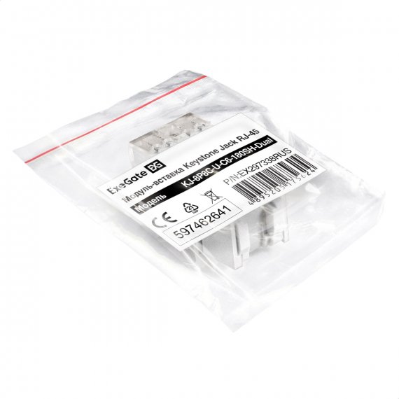 Exegate EX297338RUS Модуль-вставка Keystone Jack RJ-45 KJ-8P8C-U-C6-180SH-Dual