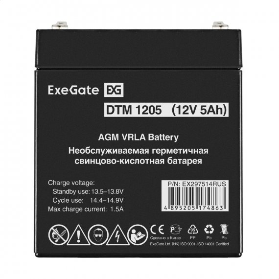 Exegate EX297514RUS Аккумуляторная батарея DTM 1205 (12V 5Ah, клеммы F2)
