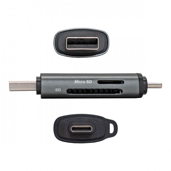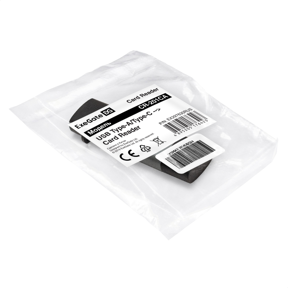 Устройство чтения/записи карт памяти ExeGate CR-201CA (компактный картридер USB Type-A + Type-C --> Card Reader, поддержка стандартов: SD/SDHC/MMCII/RS MMC, Micro SD/ Micro SDHC/Micro SDXC, Plug&Play, серый)