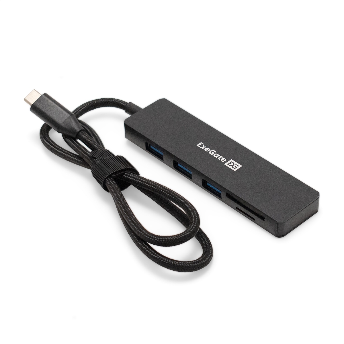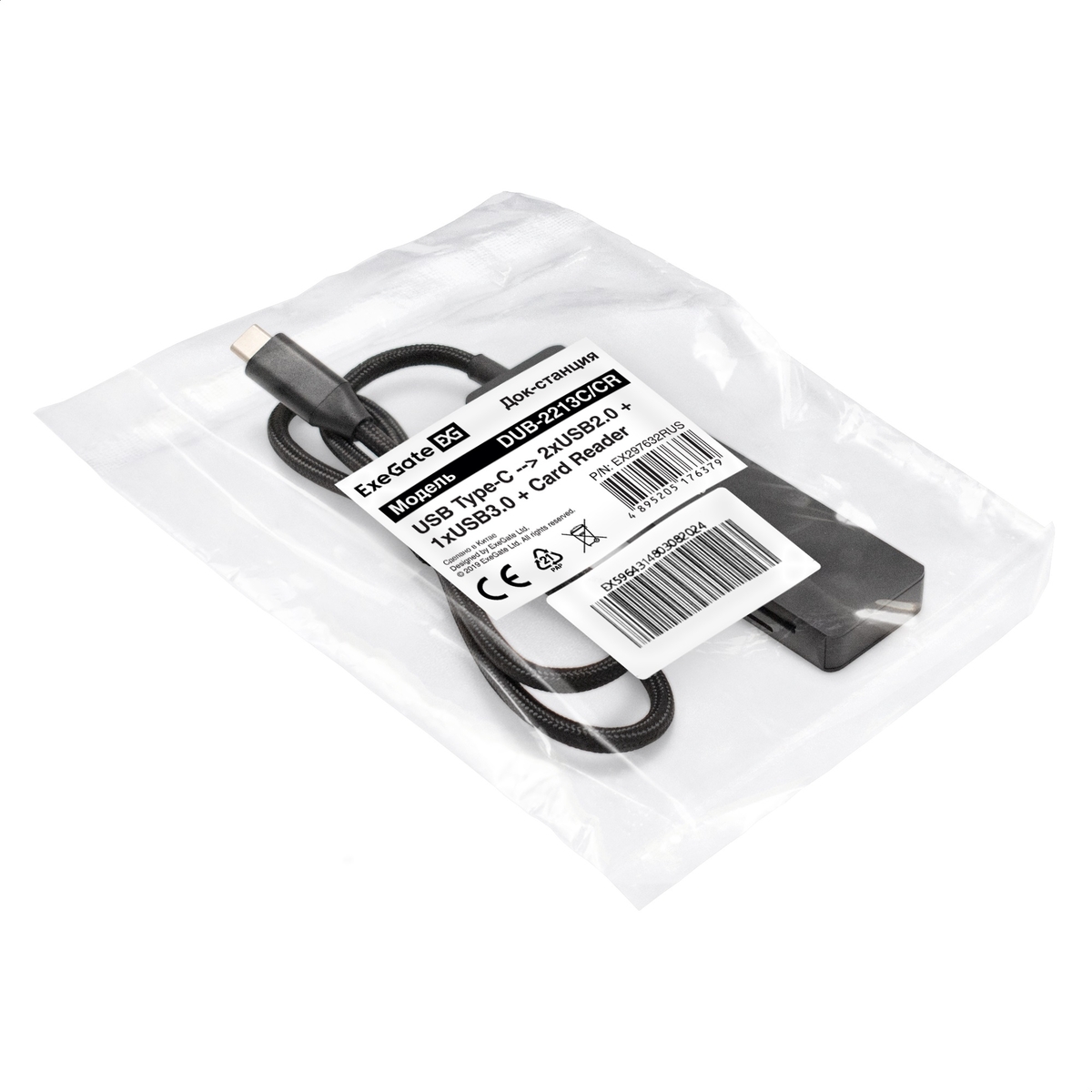 Док-станция 4-в-1 ExeGate DUB-2213C/CR (кабель-адаптер USB Type-C --> 2xUSB2.0+ 1xUSB3.0+Card Reader, Plug&Play, корпус алюминиевый, черный)
