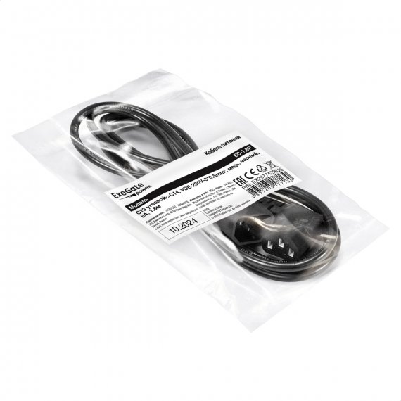 Кабель питания ExeGate Power EC-1.8P-C13(У)->C14/3x0.5Cu (C13 угловой->C14, VDE-250V-3*0.5mm2, медь, черный, 6A, 1.8м)