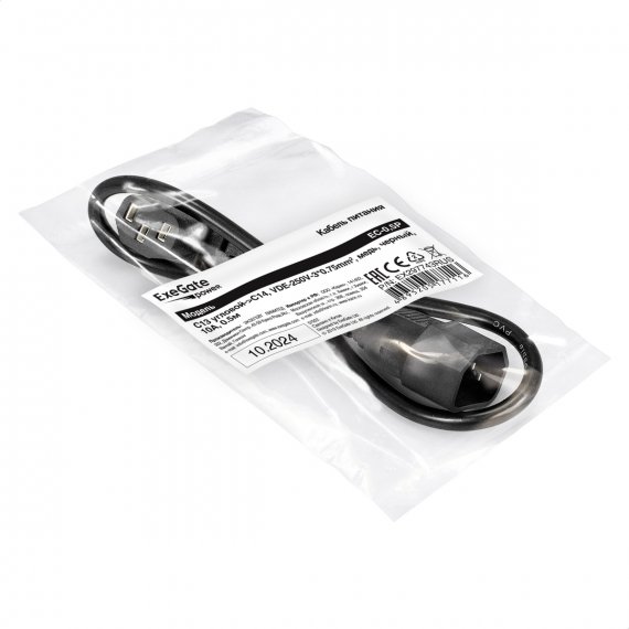 Кабель питания ExeGate Power EC-0.5P-C13(У)->C14/3x0.75Cu (C13 угловой->C14, VDE-250V-3*0.75mm2, медь, черный, 10A, 0.5м)