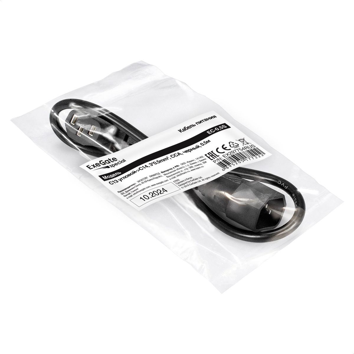 Кабель питания ExeGate Special EC-0.5S-C13(У)->C14/3x0.5 (C13 угловой->C14, 3*0.5mm2, CCA, черный, 0.5м)