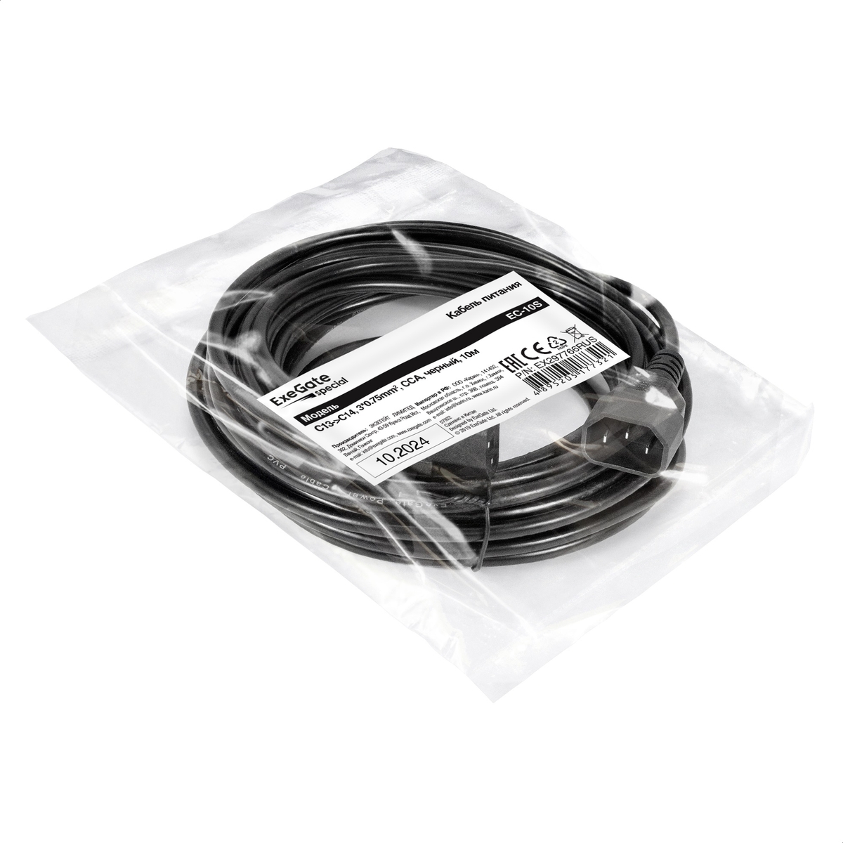 Кабель питания ExeGate Special EC-10S-C13->C14/3x0.75 (C13->C14, 3*0.75mm2, CCA, черный, 10м)