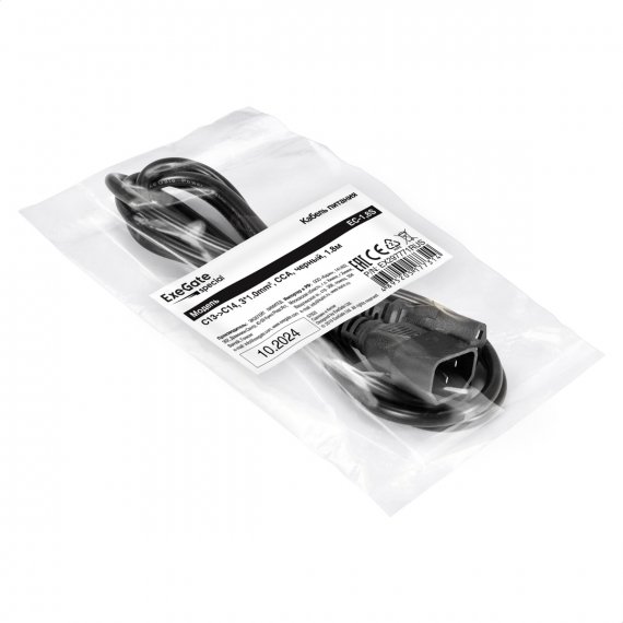 Кабель питания ExeGate Special EC-1.8S-C13->C14/3x1.0 (C13->C14, 3*1.0mm2, CCA, черный, 1.8м)