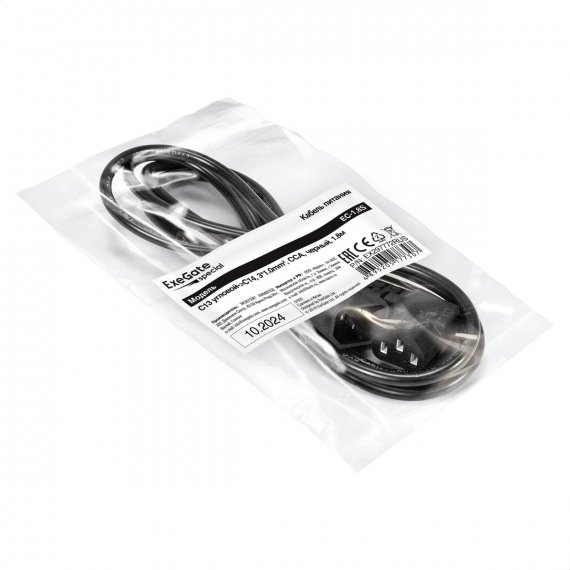 Кабель питания ExeGate Special EC-1.8S-C13(У)->C14/3x1.0 (C13 угловой->C14, 3*1.0mm2, CCA, черный, 1.8м)