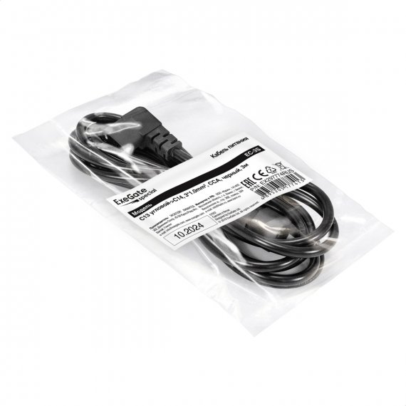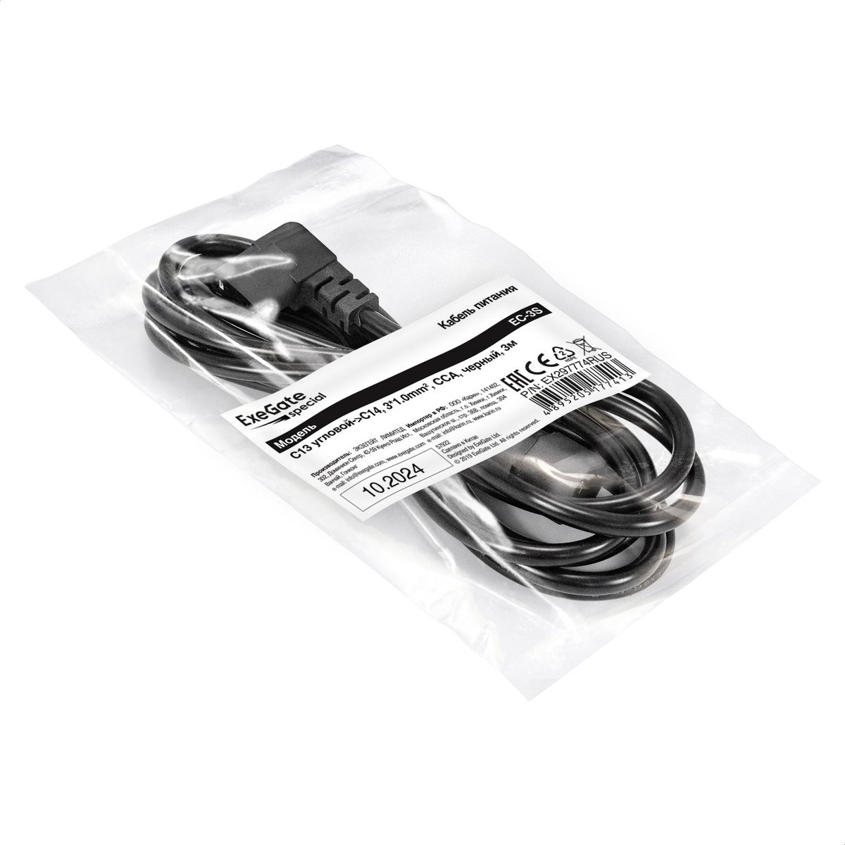 Кабель питания ExeGate Special EC-3S-C13(У)->C14/3x1.0 (C13 угловой->C14, 3*1.0mm2, CCA, черный, 3м)