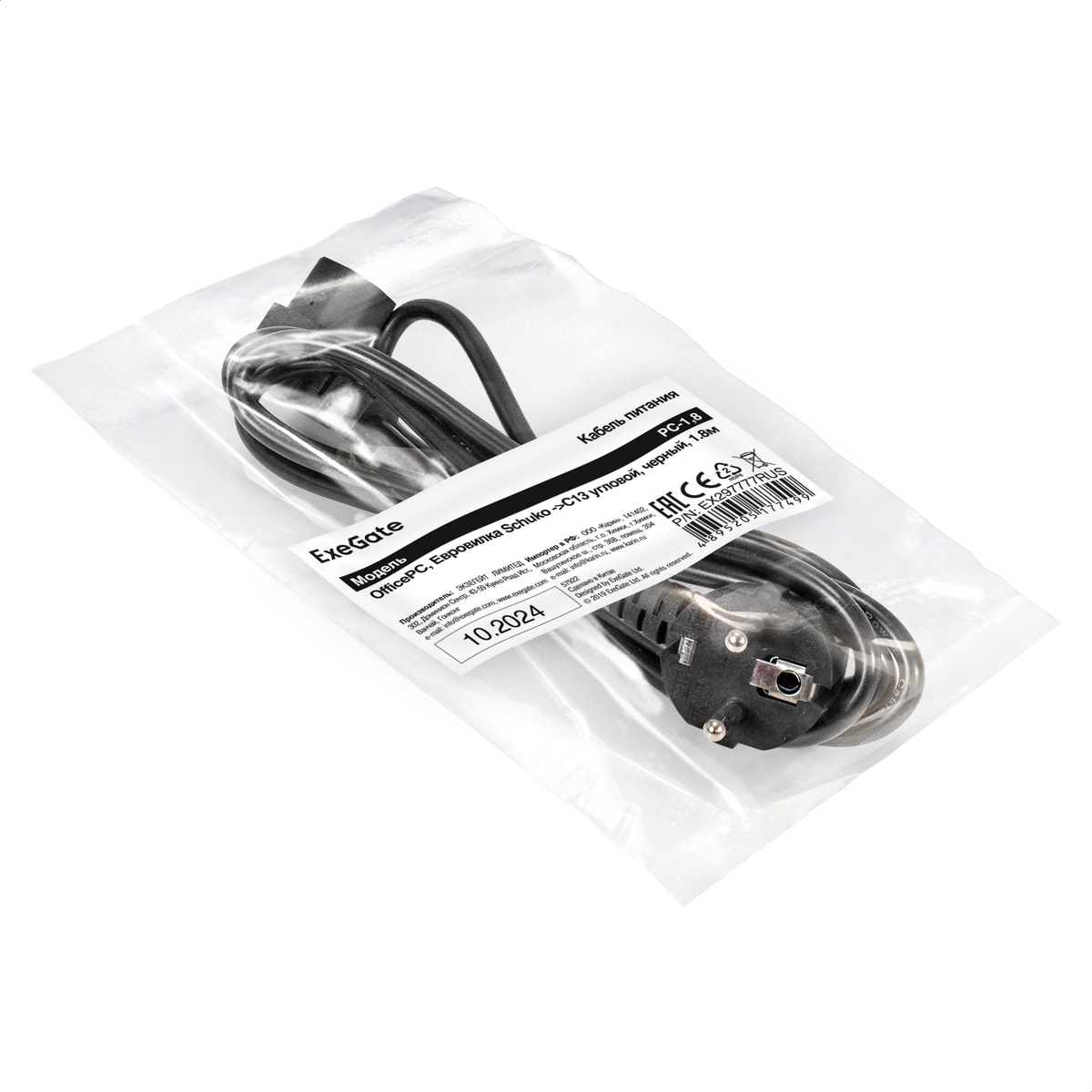 Кабель питания ExeGate OfficePC PC-1.8 450W-Schuko->C13(У) (Евровилка Schuko ->C13 угловой, черный, 1.8м)