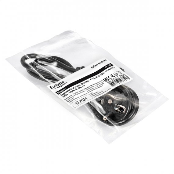 Кабель питания ExeGate Power PC-1P-Schuko(У)->C13/3x0.5Cu (Евровилка угловая Schuko->C13, VDE-250V-3*0.5mm2, медь, черный, 6A, 1м)