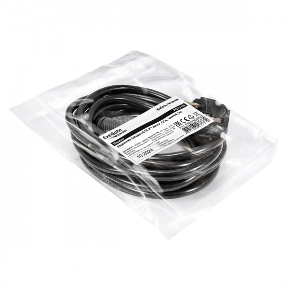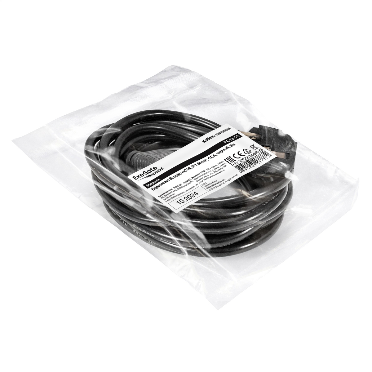 Кабель питания ExeGate Special PC19-5S-Schuko->C19/3x1.5 (Евровилка Schuko->C19, 3*1.5mm2, CCA, черный, 5м)