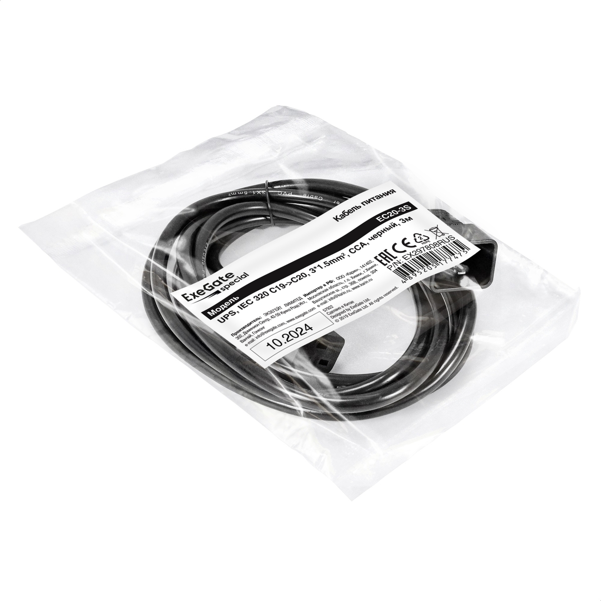 Кабель питания (UPS) ExeGate Special EC20-3S-C19->C20/3x1.5 (IEC 320 C19->C20, 3*1.5mm2, CCA, черный, 3м)