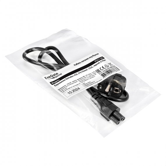 Кабель питания ноутбуков ExeGate Special PC5-0.75S-Schuko->C5/3x0.75 (Евровилка Schuko->C5, 3*0.75mm2, CCA, черный, 0.75м)