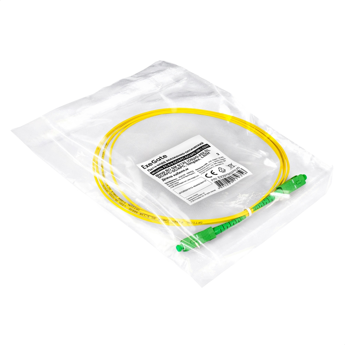 Патч-корд волоконно-оптический ExeGate FC-S-9-SC/APC-SC/APC-2M-LSZH (Шнур ВО SM 9/125 (OS2/G.652.D), SC/APC-SC/APC, Simplex, LSZH, 2 м)