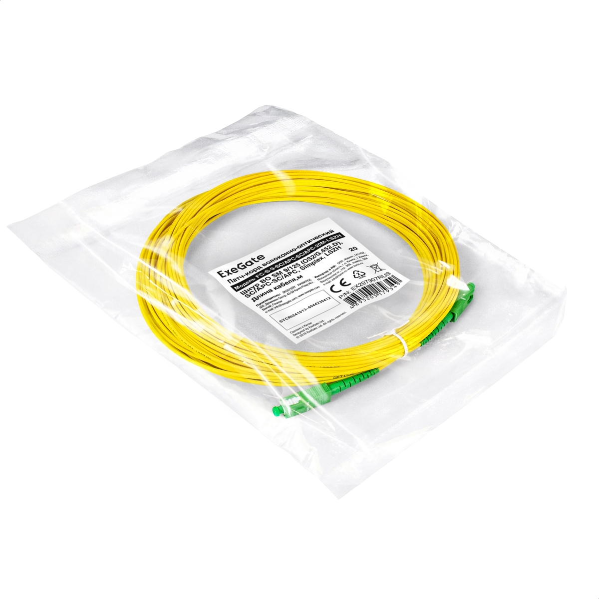 Патч-корд волоконно-оптический ExeGate FC-S-9-SC/APC-SC/APC-20M-LSZH (Шнур ВО SM 9/125 (OS2/G.652.D), SC/APC-SC/APC, Simplex, LSZH, 20 м)