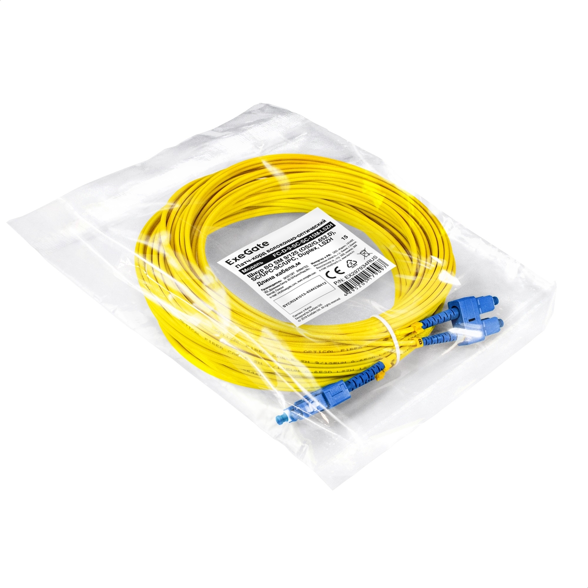 Патч-корд волоконно-оптический ExeGate FC-D-9-SC-SC-15M-LSZH (Шнур ВО SM 9/125 (OS2/G.652.D), SC/UPC-SC/UPC, Duplex, LSZH, 15м)