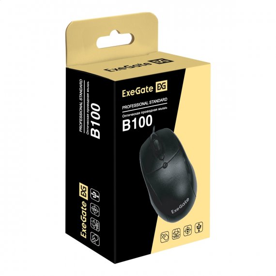 Мышь ExeGate Professional Standard B100 (USB, оптическая, 1000dpi, 3D, 3 кнопки и колесо прокрутки, длина кабеля 1,5м, черная, Color Box)