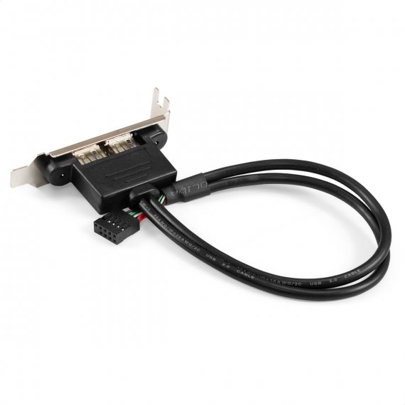 Планка портов в корпус 2xUSB2.0 ExeGate BrctUSB2-2A-LP (USB 2.0 9pin (IDC 9pin F) --> 2x USB 2.0 Af, кабель 20см, Low Profile)