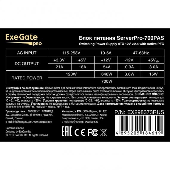 Exegate EX298373RUS Серверный БП 700W ServerPRO-700PAS